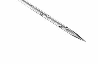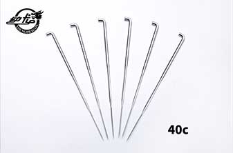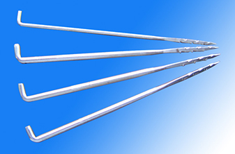 三維模壓成型的G型和GB型鉤刺可延長(zhǎng)刺針的壽命。常用無紡刺針每一棱帶三個(gè)鉤刺,在一些用底布材料的特殊用途上,只在一棱或兩棱上帶鉤刺。彎柄方向可以是偏左或偏右以縱向或橫向保護(hù)底布材料,將損害減至最低,無紡刺針的方向視帶鉤刺棱邊的位置而定。